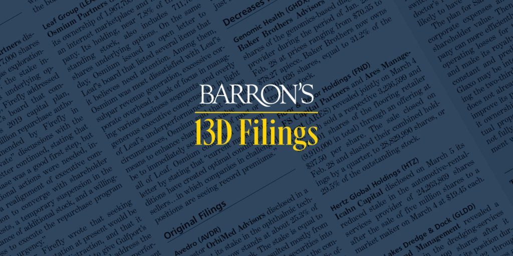 These disclosures are from 13Ds filed with the Securities and Exchange Commission. 13Ds are filed within 10 days of an entity’s attaining more than 5% in any class of a company’s securities. Subsequent changes in holdings or intentions must be reported in amended filings. This material is from Nov. 2 through Nov. 8, 2023. Source: VerityData